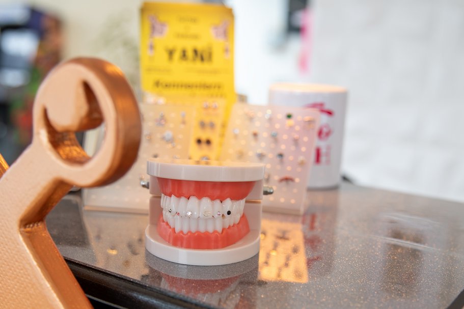 Die Begeisterung für Körperschmuck teilt ihr Lebensgefährte Yalin, wenn auch auf andere Weise. Schon als Jugendlicher brachte er sich selbst das Tätowieren bei. „Es war schon immer mein Traum, ein eigenes Studio zu haben“, erzählt der gebürtige Türke, der mit Nicole in der Gartenstadt lebt. Die war sofort Feuer und Flamme für seine Idee. Sie besuchte Piercingkurse, kündigte ihren Job und machte mit – eine Erbschaft erleichterte die Investition. „Am 1. September 2024 haben wir über die WOBAU die Räume gefunden und am 16. November unter dem Namen YANI – einer Verschmelzung unserer Vornamen – eröffnet“, erklärt Nicole. Die Raumaufteilung passte perfekt, große Umbauten waren nicht nötig.
